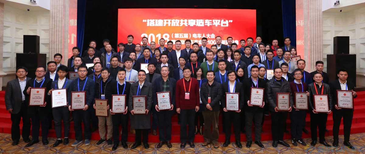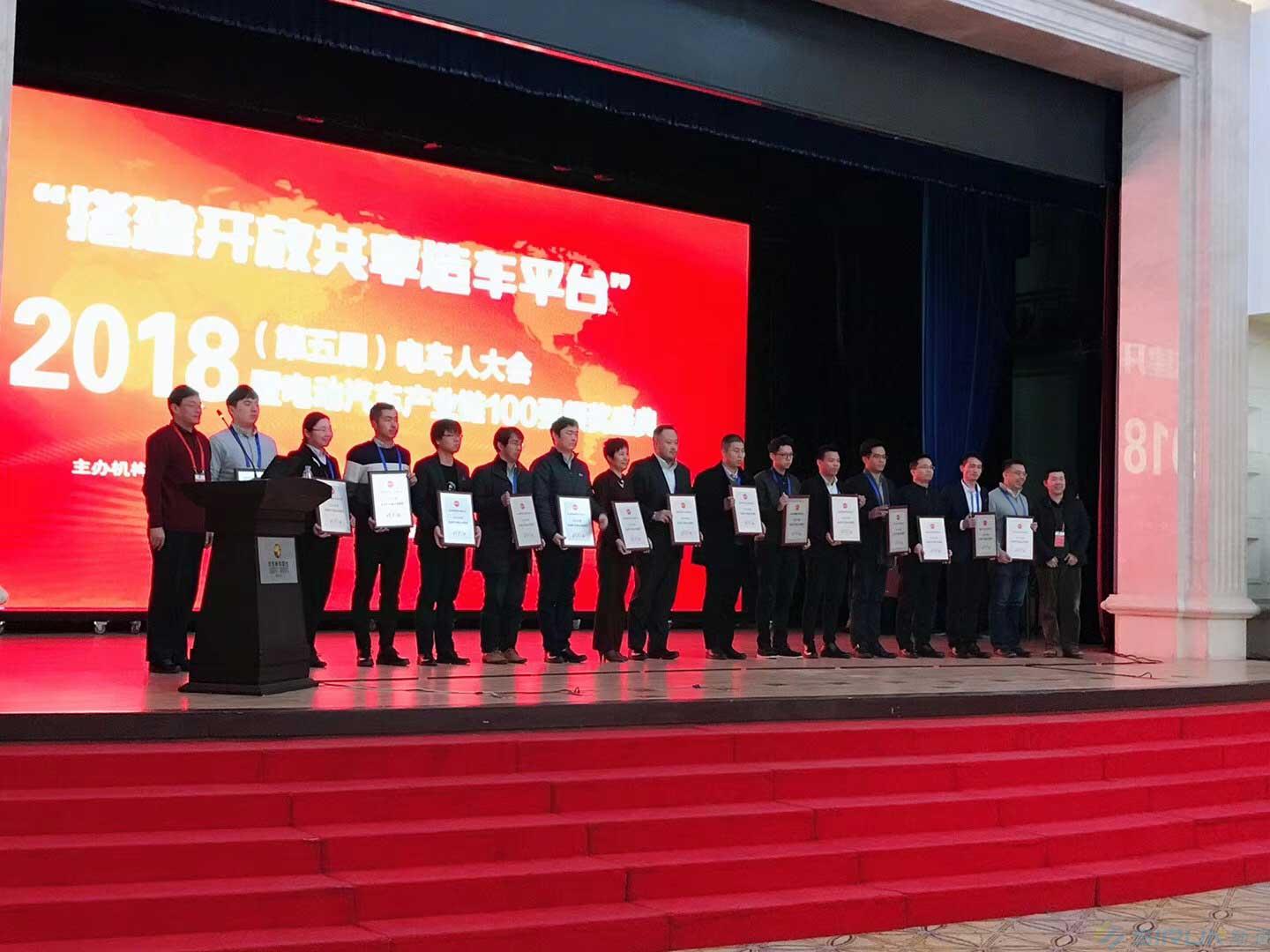 獲獎企業(yè)代表合影留念斯?jié)櫶炖蕵s膺”電動汽車核心零部件提供商100強"