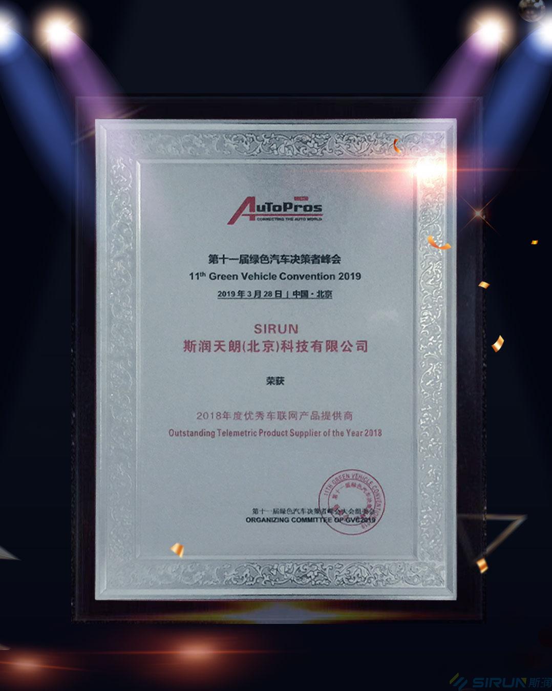 AuToPros 第11屆綠色汽車決策者峰會于2019年3月28日在北京舉辦,在“第十一屆綠色汽車決策者峰會”頒獎典禮上,斯?jié)櫶炖蕵s獲“2018年度優(yōu)秀車聯(lián)網(wǎng)產(chǎn)品提供商”和“2018年度優(yōu)秀電動車核心零部件提供商” 雙獎項(xiàng)。