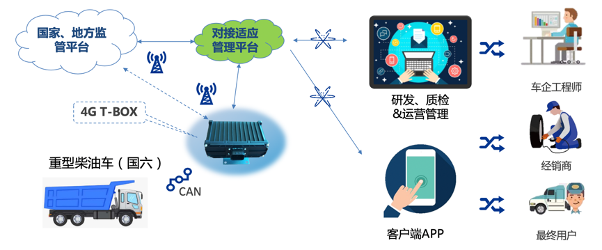 面向車輛用戶,能夠為商用車用戶提供遠(yuǎn)程車控、車輛診斷、安防與位置服務(wù)等以及多維度的售后服務(wù)產(chǎn)品。