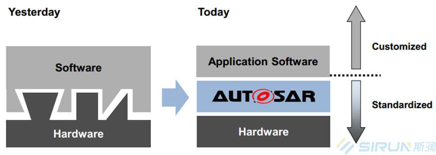 以上就是AUTOSAR的官方定義,一個(gè)開放的系統(tǒng)架構(gòu),便于軟件的標(biāo)準(zhǔn)化設(shè)計(jì)以及跨硬件平臺(tái)的應(yīng)用。